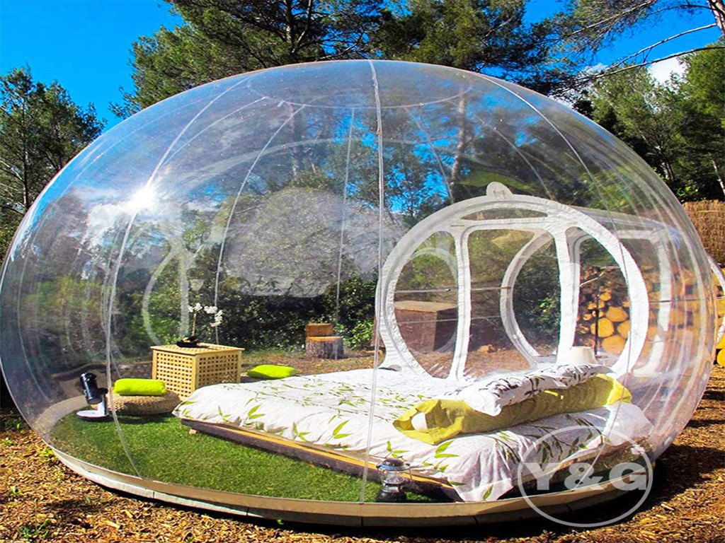 It must be an unforgettable experience to enjoy the beautiful natural scenery and sleep under the tranquil starry sky in this transparent inflatable tunnel bubble tent