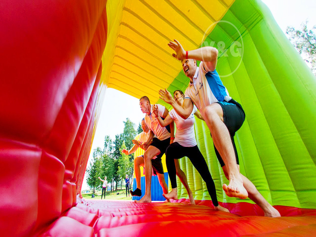 Best outdoor inflatable games for team building -- inflatable flip it cube.