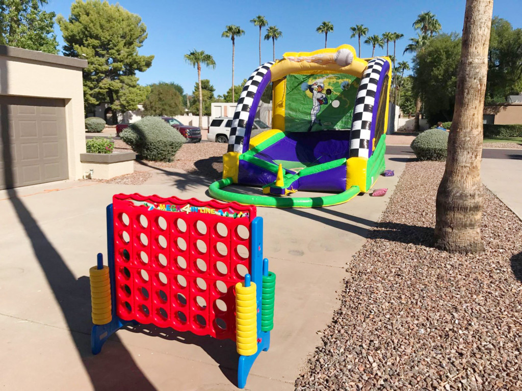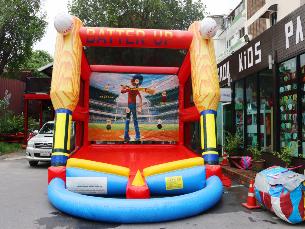 Where are the little baseball players? The inflatable baseball game is ready to begin. Come and join the game to see who will be the best scorer of the day