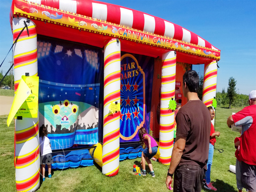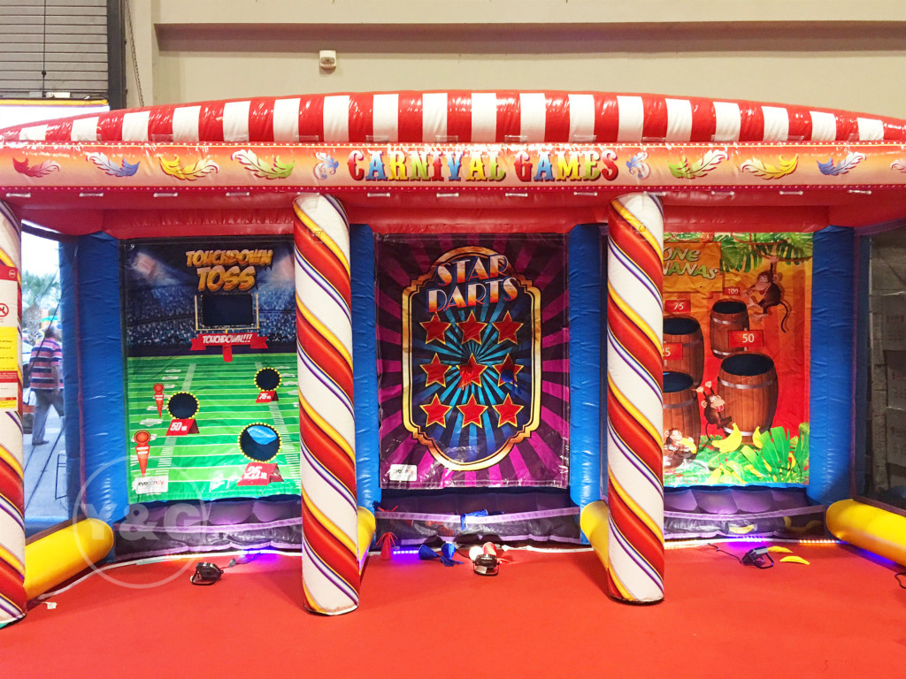 Carnival inflatable game features a variety of! You can shoot with your friends, have a fun boxing match, compare your shooting skills, or play ring toss. You will laugh like a child here!!