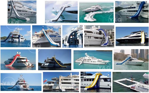 You may not have seen an inflatable water slide that can fit on a yacht, but now,yacht inflatable water slides are becoming popular.And we have designed and make the inflatable water slide on a yacht ,which can improve the yacht experience for our customers. The inflatable slide can turn your yacht into a water park. All you need to do is add some inflatable toys to your yacht and strengthening safety measures.
